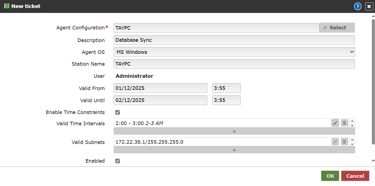 A Ticket is a controlled authorization method that allows a software agent—or even an AI agent—to retrieve the privileged account password for a registered station. Tickets can also be provided for a user, such as an independent contractor who needs Admin-level access to a computer for a period of time.